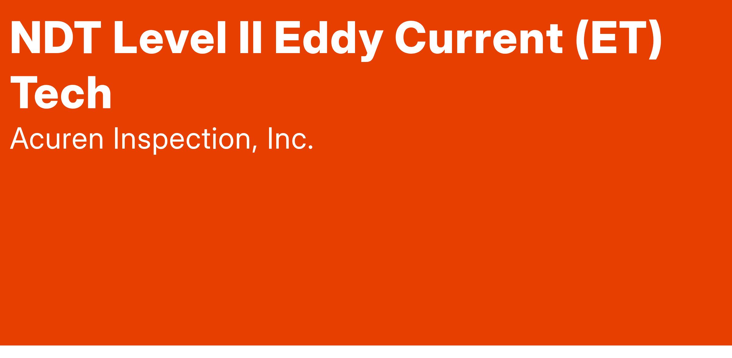 Acuren is currently recruiting for an NDT Level II ET Technician.