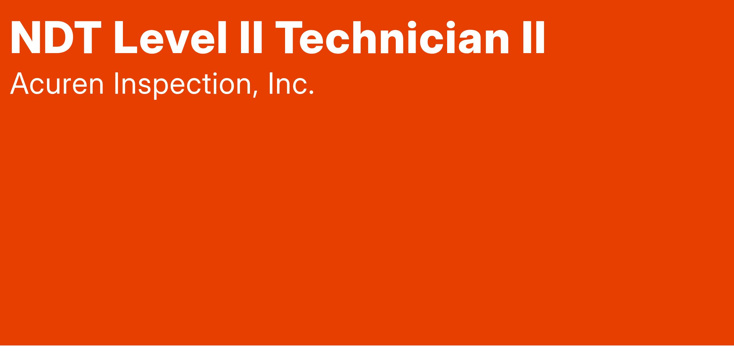 Acuren is currently recruiting for NDT Level II Technicians, for the Minden, LA office to support long-term projects in South and West Texas.